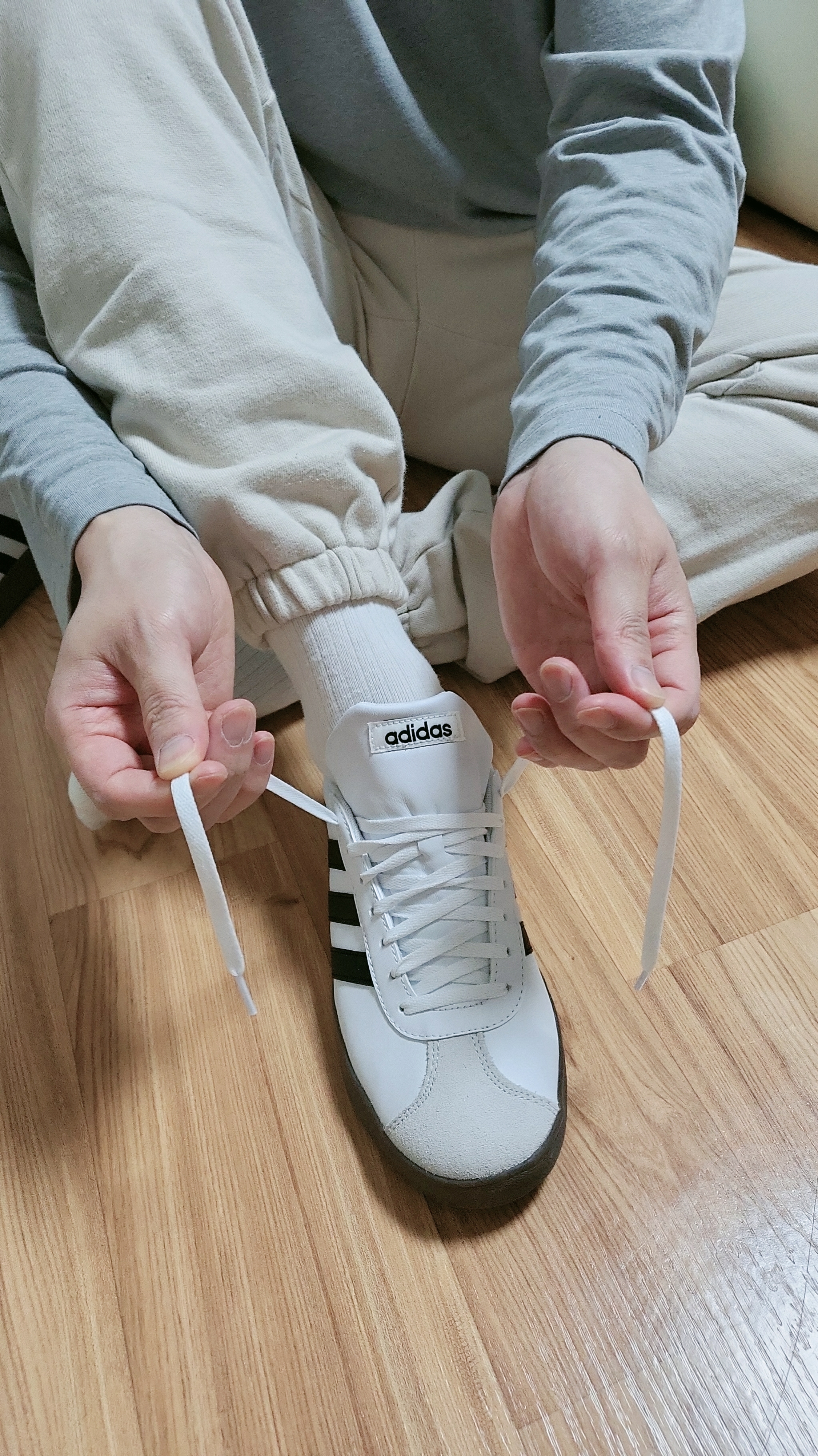 대체적으로 세가지 방법으로 신발끈 매듭을 정리하는데요.