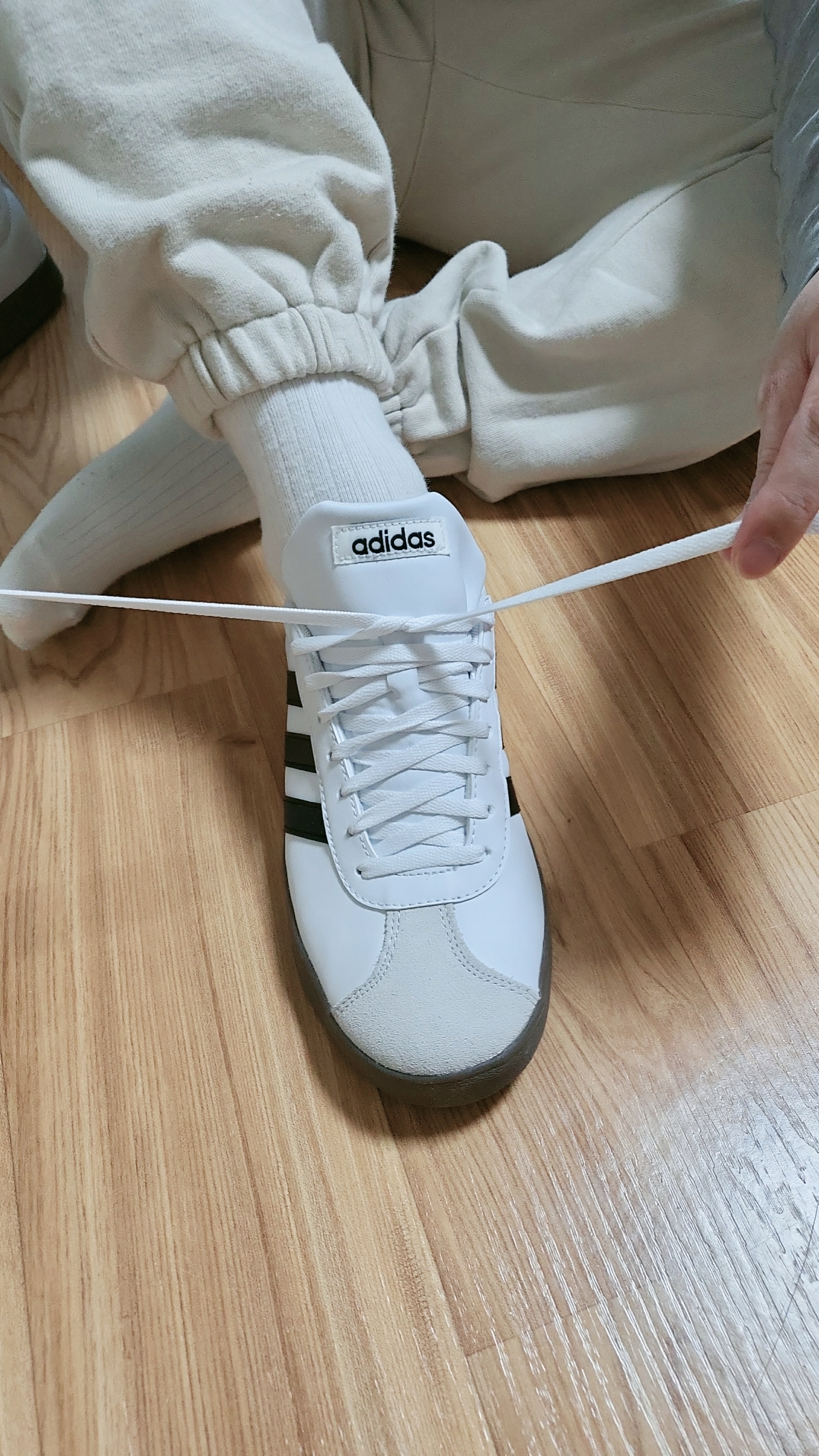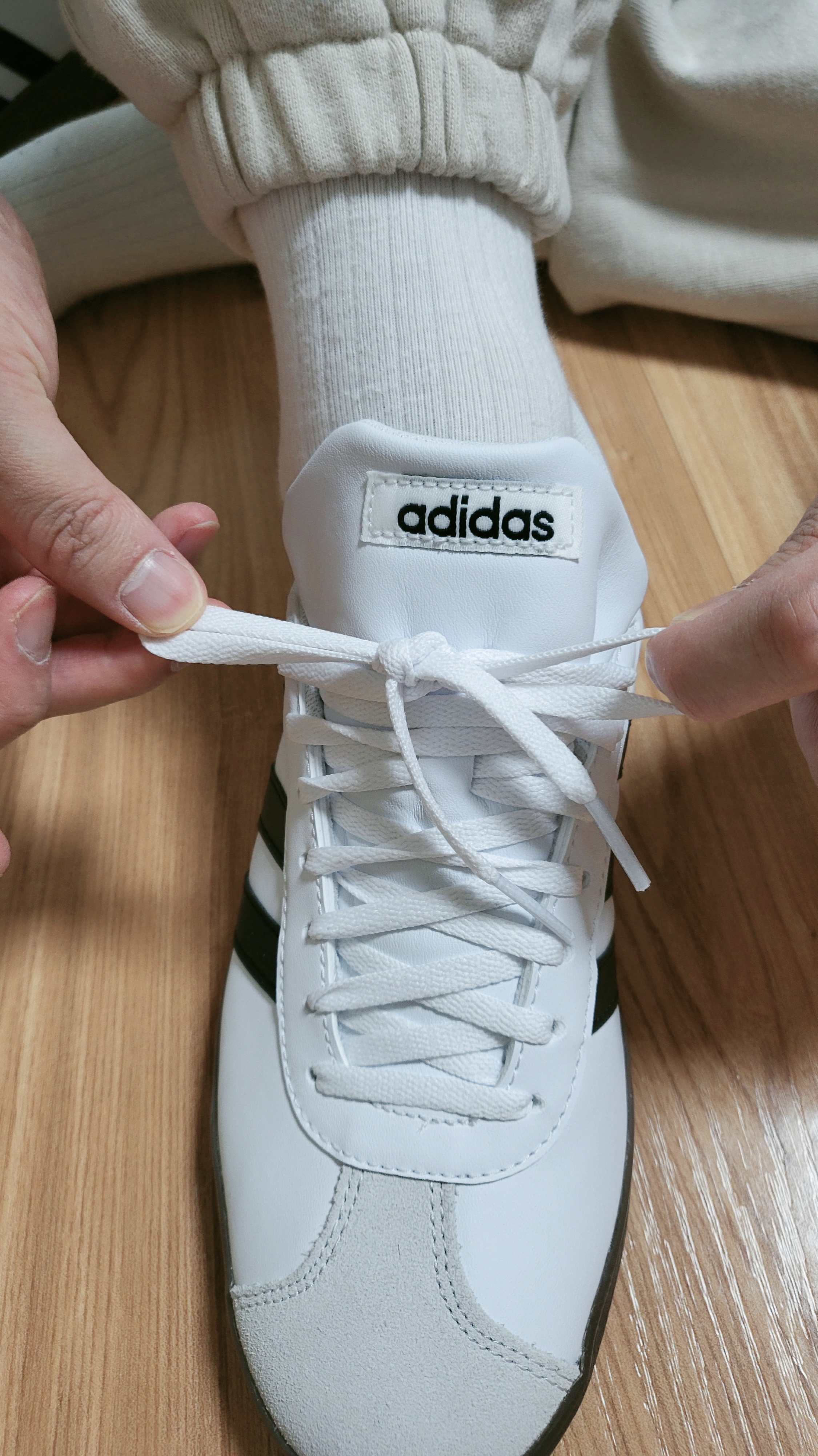 대체적으로 세가지 방법으로 신발끈 매듭을 정리하는데요.