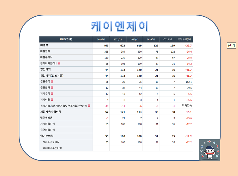 오늘은 케이엔제이 종목을 분석해 보도록 하겠습니다.